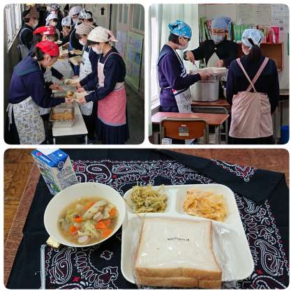 今日のメニューは、ポトフ、カレーソテー、桃のクラフティ、バター、パンと牛乳です。