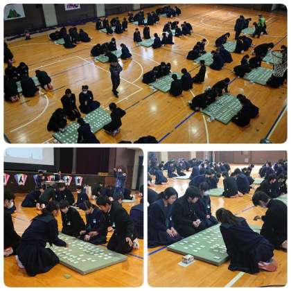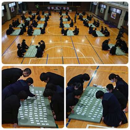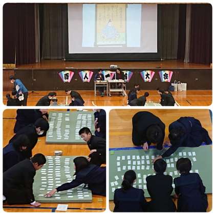 読み手の上山先生が読み始めると、素早く札を取ります。白熱したクラス対抗戦となりました。