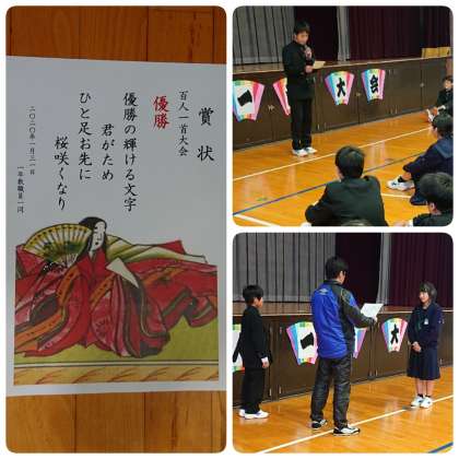 これまでに国語の授業や大会に向けてしっかりと覚えてきた成果もあり、下の句が読まれる前にほとんどの組が取り札を取っていました。それぞれに得意の歌があるようで、静寂の中、白熱した戦いが繰り広げられました。