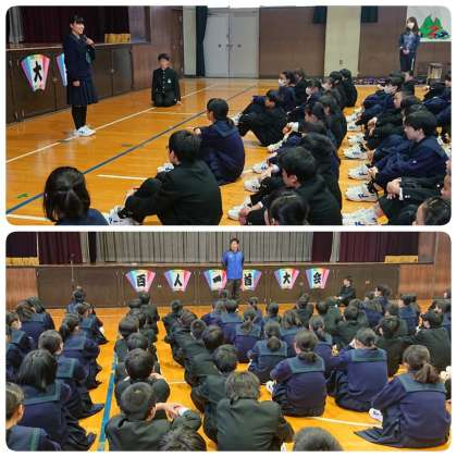 優勝は3組です。3組の女子委員長に、学年主任の西村先生から表彰状が授与されました。生徒代表の閉会宣言に続いて、西村先生から講評がありました。