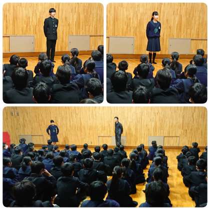 2月5日(水)、1年生は朝の学年集会を行いました。