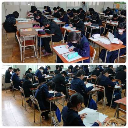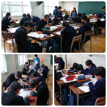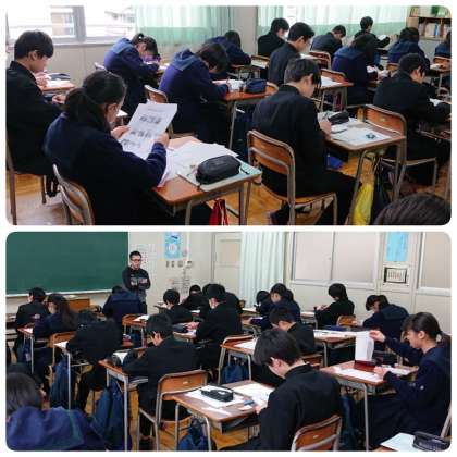 2月7日(金)6時間目、1年生は各教室で進路学習の一環として職業ガイドづくりに取り組みました。