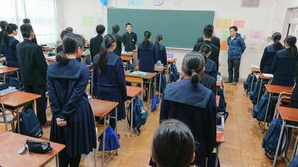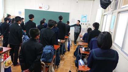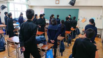 2月12日(水)、1年生は朝の学年集会の日ですが、生徒会の意向で、3月6日(金)に行われる「卒業生を送る会」に向け、生徒会役員を中心に各教室で歌の練習に取り組んでいました。