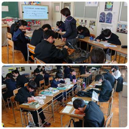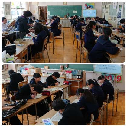 2月21日(金)3時間目、1年2組の美術の授業の様子です。