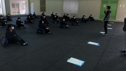 1組は9時から、2組は10時から、3組は11時からと、生徒の皆さんはそれぞれ時間を守ってしっかりと集合されていました。新型コロナウイルスの感染症予防対策のため、グループで教室にある配布資料や教科書を取りに行き、体育館で配布物の内容確認を行いました。本日、配られた配布内容は「1年生学年だより」をご覧いただいてご確認ください。