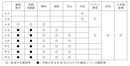 また、一部の教科等について、対象学年に小学1年生から3年生を加えるとともに、小学4年生から中学3年生についても新たな教科等を加えていますので、ご活用ください。