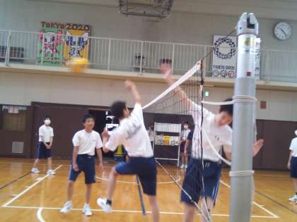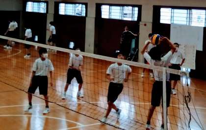 でも体育館を覗くと、2年生男子が元気にバレーボールをしていました。