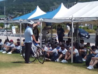 いよいよ本日のメイン体験、サイクリングです。説明を聞いて、レッツゴー。