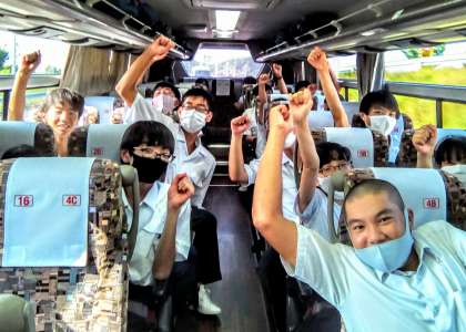 疲れて寝ている生徒もいますが、3号車の3組生徒は元気いっぱいです。