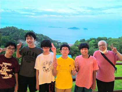 風呂あがりの夕涼み。素敵な露天風呂でリラックスした後に、テラスでパチリ。
