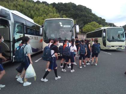 クラスごとのバスに乗り換え、クラス別男女別の6つの宿舎へ移動します。