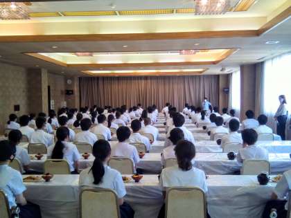 昼食の前に、2日間を振り返り、改善すべき事項の話がありました。また、午後から行う班別倉敷美観地区自主研修に対する注意事項の確認もしました。子どもたちは真剣に聞いていました。