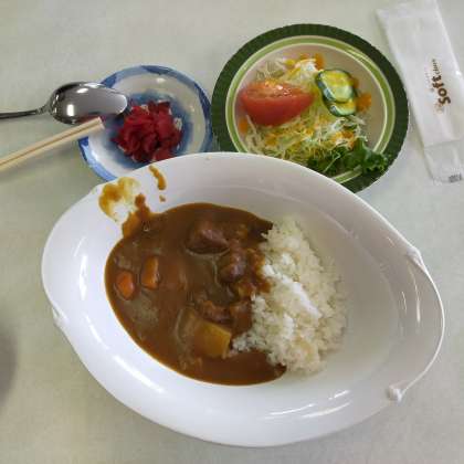 最後のご飯は、子どもたちが大好きなカレーライスです。これを食べたら、大阪へ帰るだけ。名残惜しいなあ。