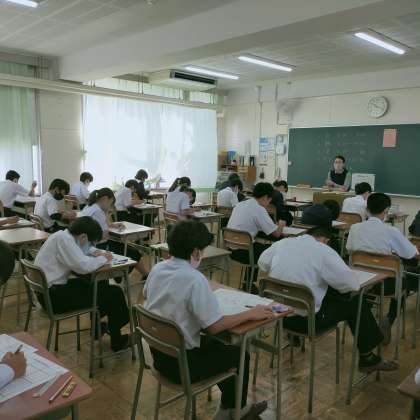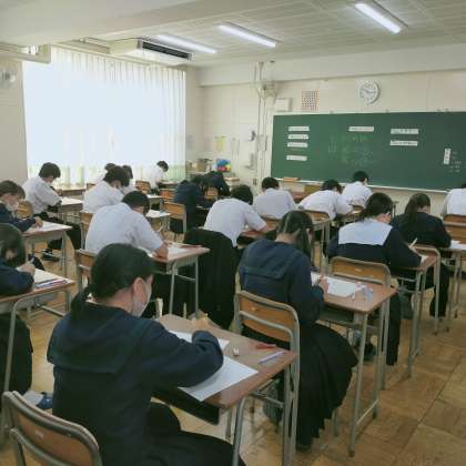 今日は中間テストの2日目です。一人ひとりが、全力でテストに臨んでいます。