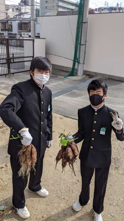 コロナで休校中に、校長先生が石だらけの空地を一生懸命に整備して畑にしました。