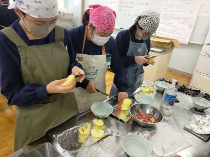 包丁を使うので安全対策はもちろんのこと、衛生対策についても指導がありました。