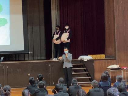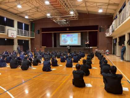 午後から体育館で性教育に取り組んでいます。はじめに助産師さんからお話がありました。生命の誕生はとても神秘的です。