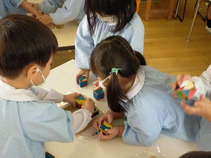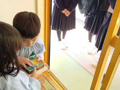 それでも自分たちが作ったパズルで楽しそうに遊ぶ幼児を見て、中学生は満足そうにしていました。