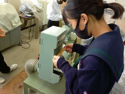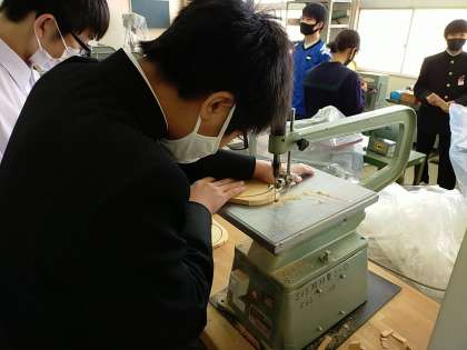 技術室で1年生が一生懸命に作業をしています。みんな真剣です。安全には十分注意してね。