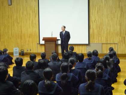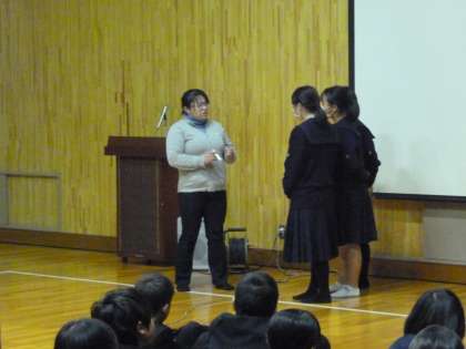 講師の先生から薬物についての知識を教えていただき、その後DVDを鑑賞してその危険性を知ることができました。また、教員や生徒が参加したロールプレイも行われ、薬物の怖さや正しい知識を身につけることができました。