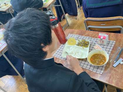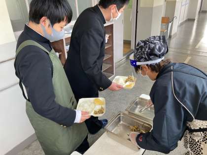 3年2組では、おかわりをもらう生徒が並んでいました。テスト1日目が終了して元気が出てきたようですね。明日の2日目も頑張ってください!