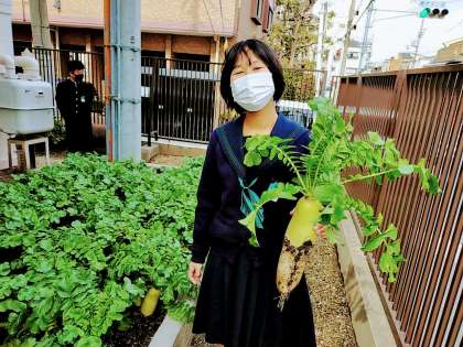 校長先生が秋から育てたダイコンを学習室の仲間で収穫しました。