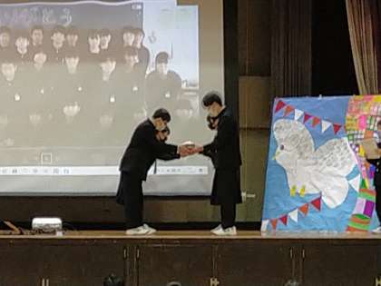 来週金曜日は第72回卒業証書授与式です。例年はたくさんの在校生で見送るのですが、新型コロナのために在校生代表1名となります。お世話になった先輩に感謝の気持ちを伝えたいと、6時間目に生徒会が企画した卒業生を送る会が行われました。
