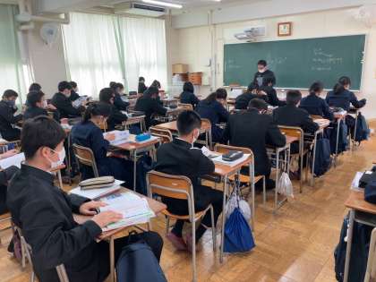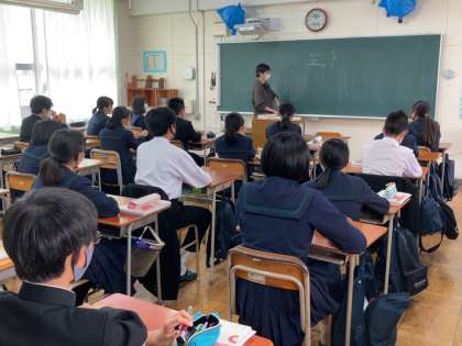 2,3年生は今日から授業が始まりました。必要な道具や学ぶことの意味、新しい先生は自己紹介をお話しています。