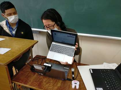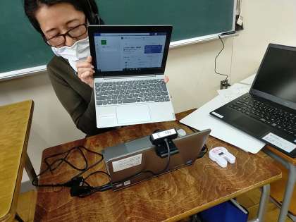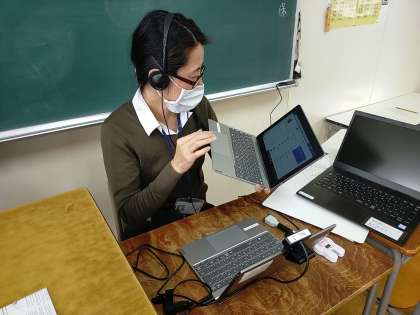オンライン上で、タブレットの使い方を説明しながら授業を進めています。