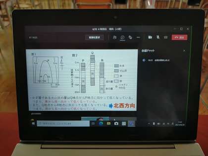 今日は地層の学習です。いろいろな図を見せながら、詳しく分かりやすく説明しています。
