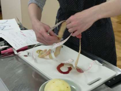 包丁の使い方の練習なので、できるだけ途切れないようにします。