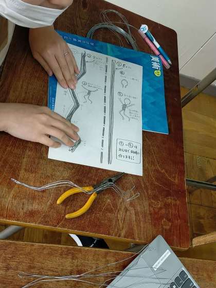 3年生は、針金を使って造形の学習をしています。