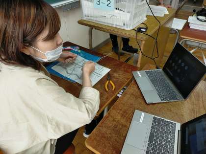 先生の説明を聞きながら、映像に合わせて作成しています。