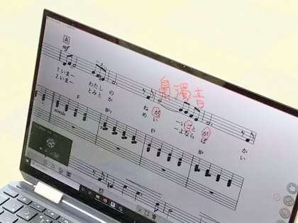 先生が赤ペンで『鼻濁音』と書くと、子どもたちの画面にも反映されます。