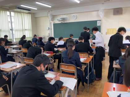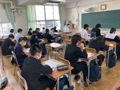 先ほど3年生の各クラスのようすをのぞいてみると、落ち着いた雰囲気で授業を受けていました。休み時間などは友達とお話をすることはあっても、しっかり切り替えができています。さすがでですね。