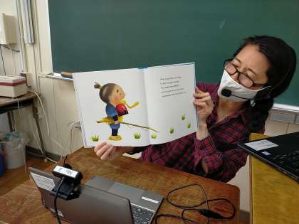 3年生は、『浦島太郎』の英語版の読み聞かせをしながら、出席確認をしています。