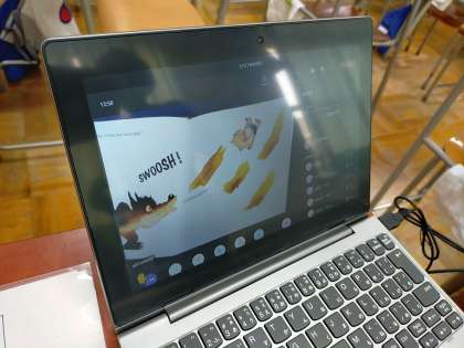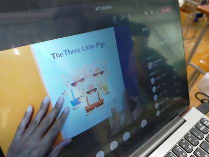 1年生は、英語で読み聞かせを行っています。