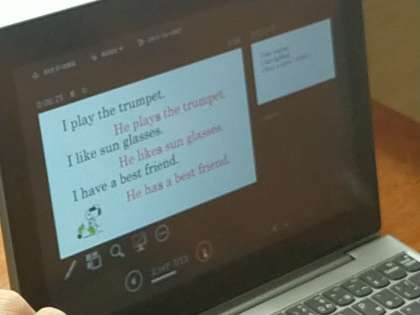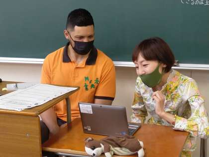 1年生は、英語科担当教員とC-NETの先生が協力して、スピーキングトレーニングをしています。