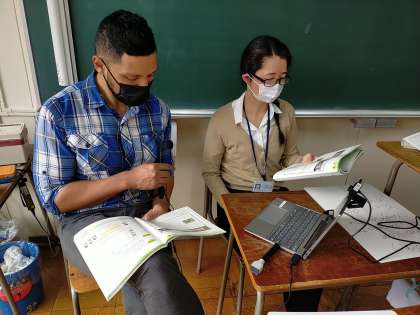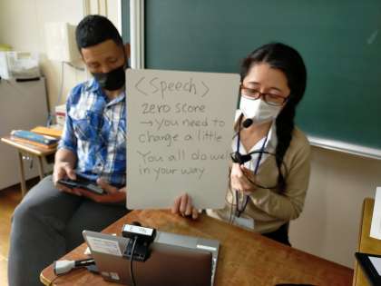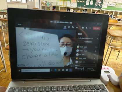 3年生では授業のはじめに、C-NETのクリス先生とのスピーチテストについての注意事項を確認しました。
