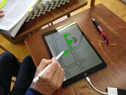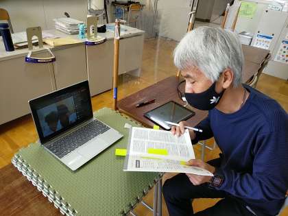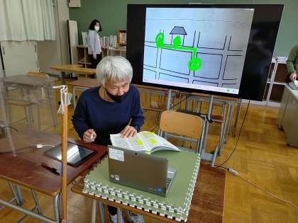 「家を出てたら左へ進み1つ目の十字路で右に曲がり・・・」という先生の説明を聞きながら、道を進んでいきます。