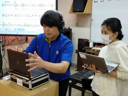 指名された生徒はマイクをオンにして、先生の質問に答えています。