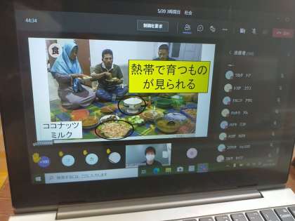 いろいろな映像を見せて、子どもたちが熱帯地域をイメージできるようにしています。
