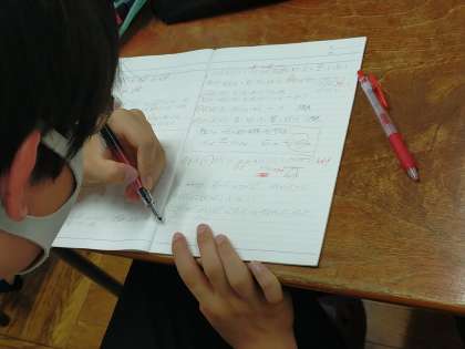まず、子どもたちがノートで解を求めます。