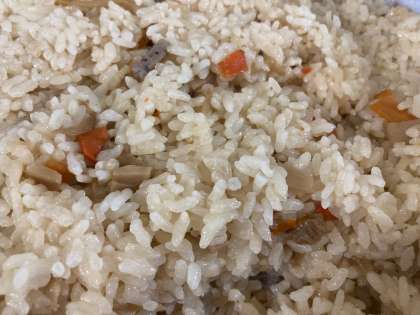 今回、給食に初めて「かやくごはん」が出ました。写真に撮ってみたところ、近づいてとると色が白っぽく写ってしまいましたが、具もタケノコやにんじんなど入っており、何よりとても美味しそうな匂いがします。