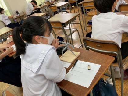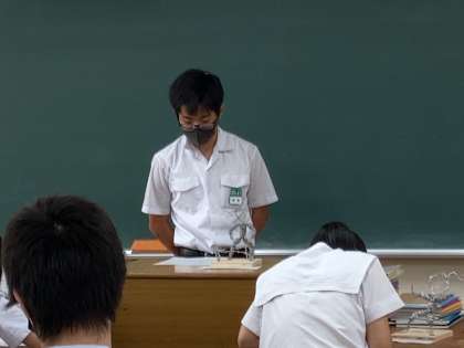事前に原稿を作成していたのか、みんなとても上手に説明していました。美術の授業の中でも言語活動が行われており、子どもたちにとっては自分の考えやイメージを言語化するのが少し難しいかもしれませんが、将来にきっと役立つ取り組みだと思います。
