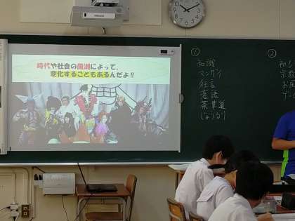3年生では、伝統文化を学ぶとともに、新たな文化が創造されている現状を学習しています。