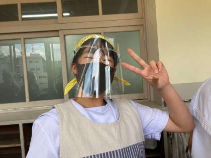 大阪桜之宮ライオンズクラブの皆様からフェイスシールドを寄附していただきました。配膳時に着用するフェイスシールドがボロボロになってきたので、さっそく子どもたちに配布しました。メガネ型ということで、熱気も抜けゴムバンドで頭を締め付けられることもないので、とても使いやすいと好評です。これで新型コロナウイルス感染症対策を継続していくことができますね。