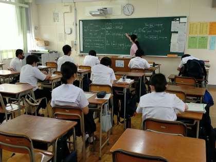 3年生の英語の授業ですが、少ないですねぇ。9人しかいません。