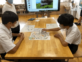 すごろくのマスには地図記号も描かれており、先生がひとつずつ丁寧に地図記号を説明してくれます。さて、都道府県パズルを多く集めたのはどちらでしょうか?