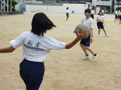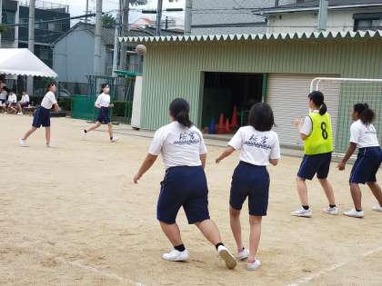 女子はドッチボールをしました。こちらは運動場ですが、男子同様に盛り上がっていました。